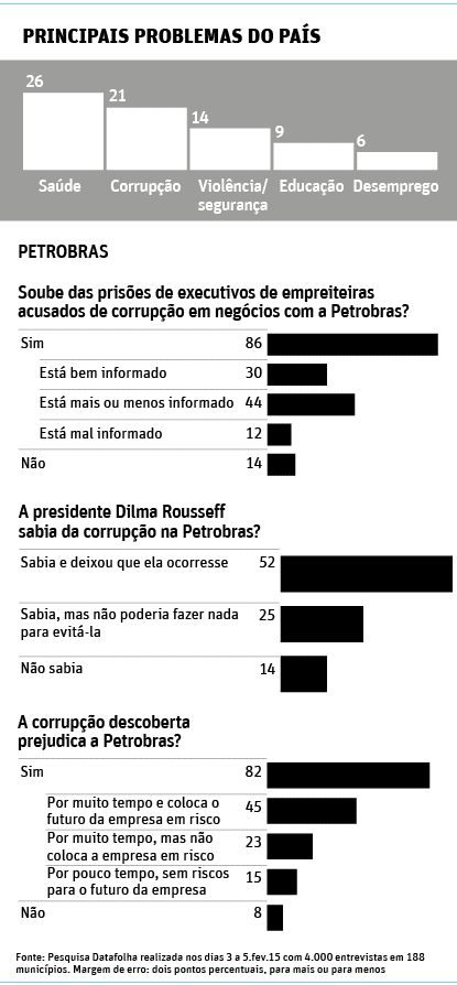 O tema da corrupção, impulsionado pelo combustível do Petrolão, rivaliza com a saúde pública como principal problema do país. Cravou 21% das preferências dos entrevistados pelo Datafolha, contra 26% da saúde.